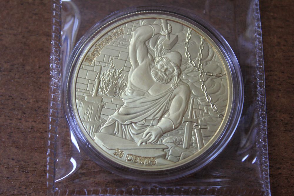 Описание Самоа 20 центов "12 Олимпийских богов в зодиаке. Гефест/ Весы" 2022 год UNC