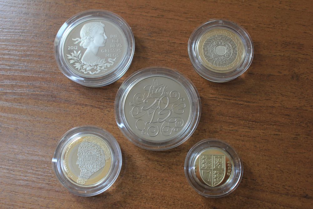 Номинал: 1, 2, 5, 10, 20, 50 пенни + 1, 2, 2, 5 фунтов.
