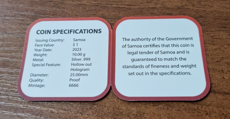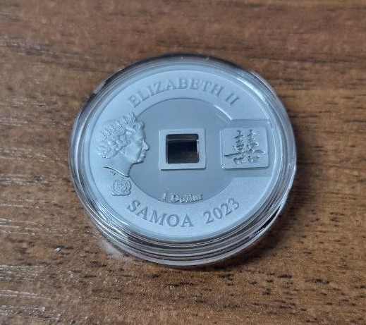 Описание Самоа 1 доллар "На счастье/ Дракон и Феникс" 2023 год Proof