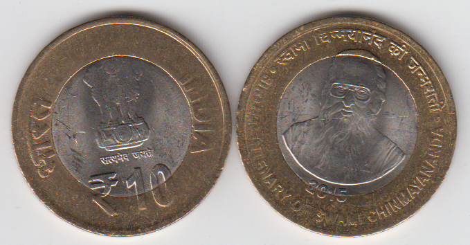 Другие фото Индия 10 рупий "00 лет со дня рождения Шинмайянанды Сарасвати" 2015 год UNC