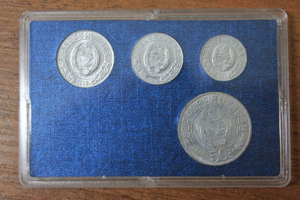 Описание КНДР Набор 8 монет "Одна и две звезды" UNC