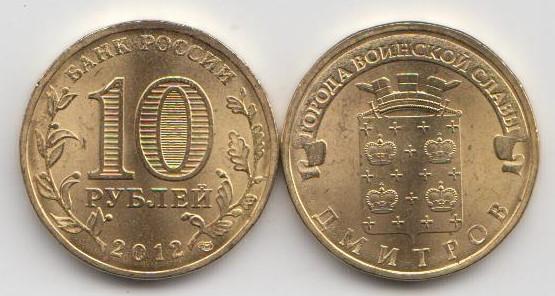 Россия 10 рублей "Города воинской славы. Дмитров" 2012 год UNC