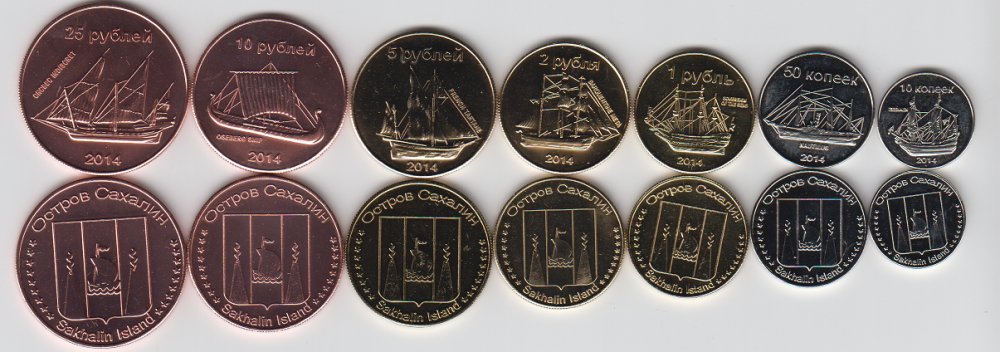 Остров Сахалин Набор 7 монет 2014 год UNC