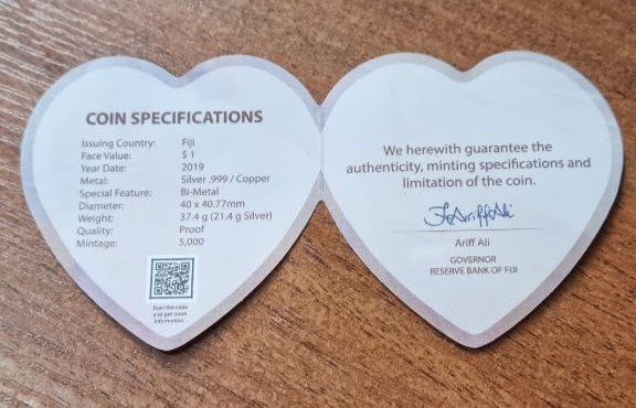 Описание Фиджи 1 доллар "Праздник любви. Лебедь" 2019 год Proof