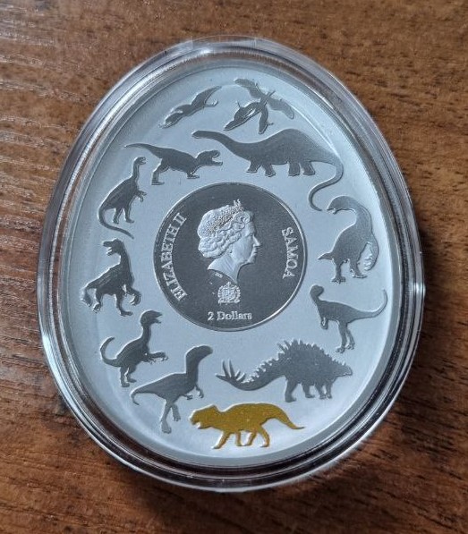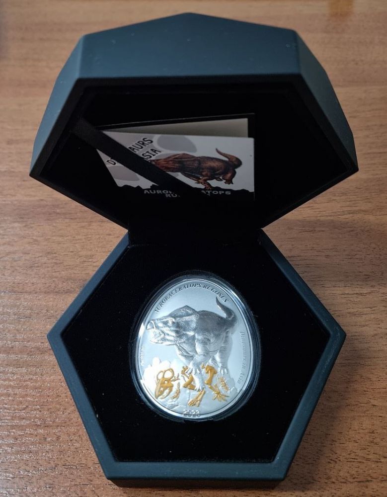 Другие фото Самоа 2 доллара "Динозавры в Азии. Аврорацератопс" 2023 год Proof Серебро