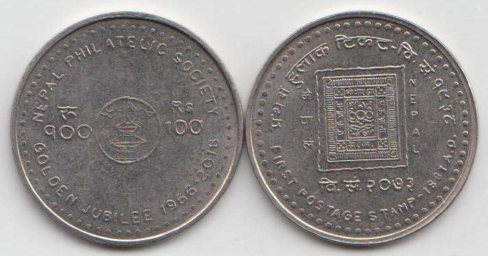 Непал 100 рупий "50 лет Обществу филателистов Непала" 2016 год UNC