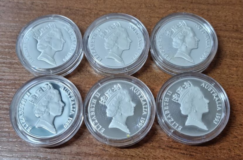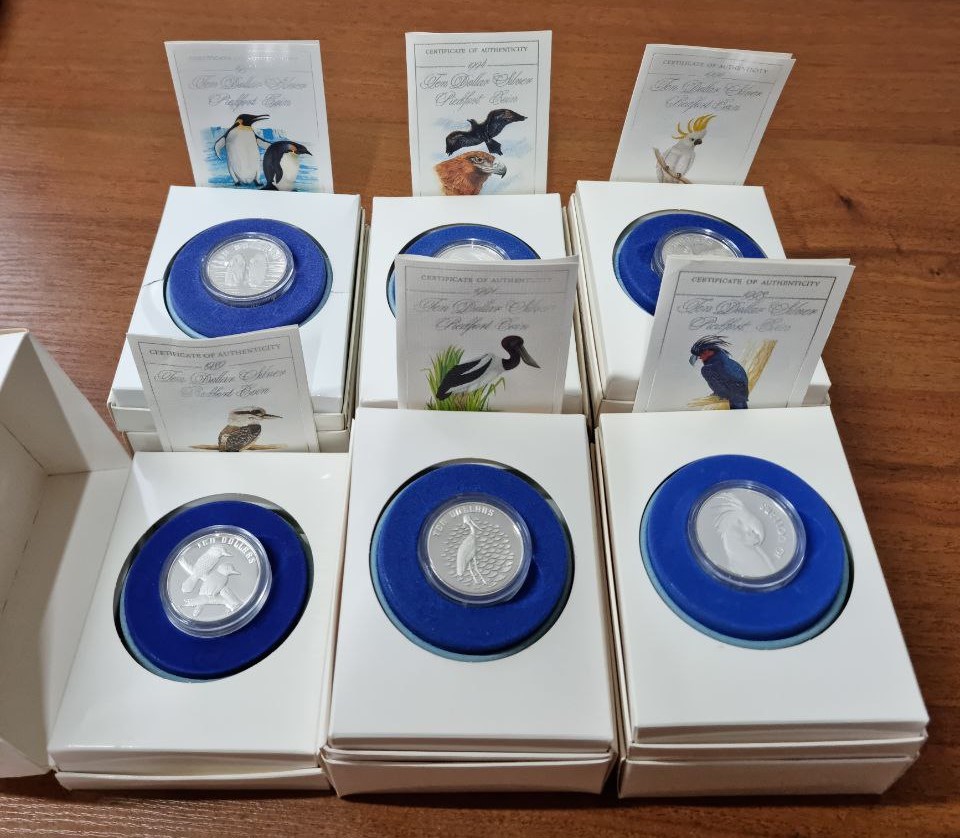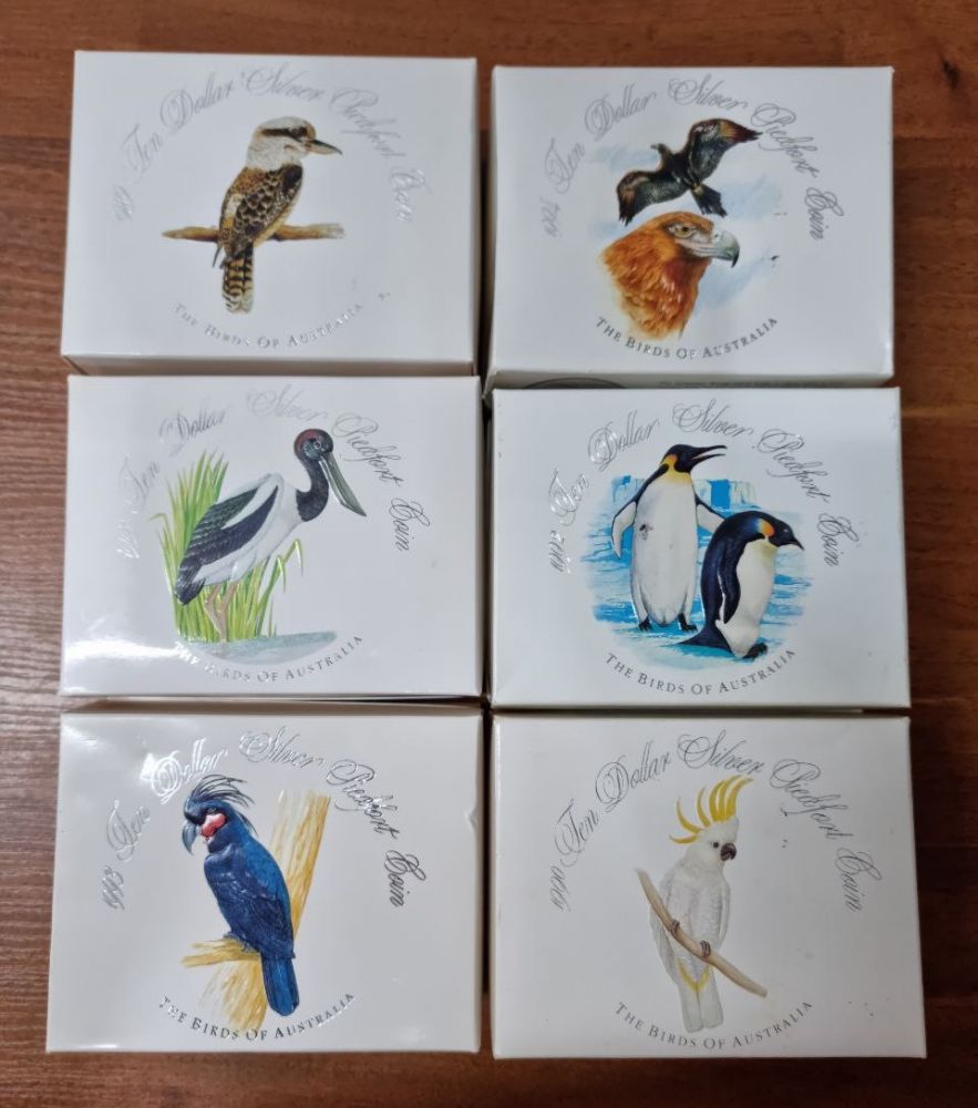 Австралия Набор 6 монет 10 долларов "Австралийские птицы" 1989-1994 Proof пьефор