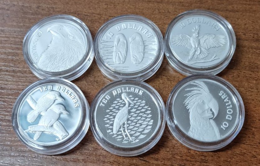 Описание Австралия Набор 6 монет 10 долларов "Австралийские птицы" 1989-1994 Proof пьефор